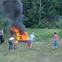 Jelikož naše cisterna Praga RN stále není hotová, přizvali jsme kamarády z Brna - Vinohrad se Sachsem. Ochotně přijeli, za což jim děkujeme. Předvedli jsme hašení minimaxy, které si děti ochotně vyzkoušeli. Odzkoušeli jsme si také hašení střední pěnou a maxi minimaxem 60 Kg hasicím práškovým přístrojem. Opět jsme roztočili bublifuk, který byl největší atrakce pro děti. Nakonec jsme předvedli lafetu a nadzdvedli jsme si kačenu podušema. Tím byly naše ukázky u konce. Jako další si klepačovský 8. oddíl skautů předvedl rýžovaní zlatých kamínků, které si mohl kdokoliv vyzkoušet, a poté vyměnit narýžované "zlato" za sladkou odměnu. Na konec nám šermíři předvedli ukázky historického šermu.