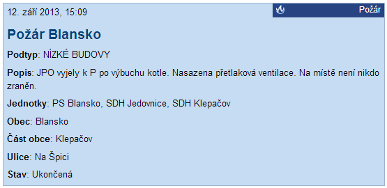 12.9.2013 Výjezd - Výbuch kotle