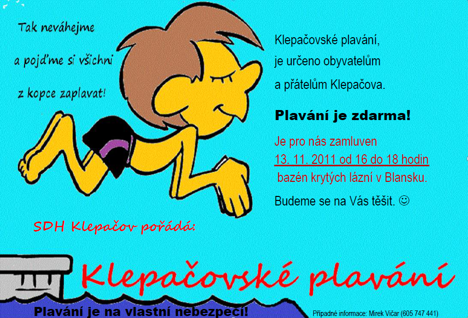 Pro občany a přátele Klepačova jsme uspořádali plavání v Městských lázních Blansko.