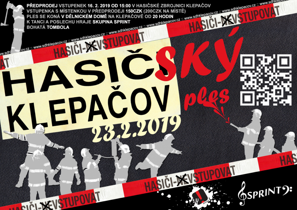 Sbor dobrovolných hasičů na Klepačově oznamuje, že v sobotu 13.4.2019 se bude konat sběr železného šrotu, starého papíru a vysloužilých elektrospotřebičů. Dále také oznamujeme, že v neděli 14.4.2019 od 14:00 hodin proběhne při Dni Země, tradiční úklid Klepačova. Sraz dobrovolníků je tentokráte u závory na paloučku. Společně uklidíme Klepačov, a po akci si odpočineme a opečeme špekáček za hasičskou zbrojnicí. Srdečně zvou členové SDH Klepačov a OA Klepačov.