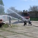 V doprovoném programu jsme mohli shlédnout ukázku požárního útoku, slaňování z žebříku magirus iveco, pak co udělá horký olej a voda a také techniku hašení unikajícího plynu z tlakové lahve.