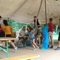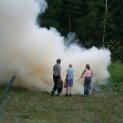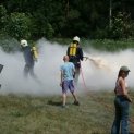 Jelikož naše cisterna Praga RN stále není hotová, přizvali jsme kamarády z Brna - Vinohrad se Sachsem. Ochotně přijeli, za což jim děkujeme. Předvedli jsme hašení minimaxy, které si děti ochotně vyzkoušeli. Odzkoušeli jsme si také hašení střední pěnou a maxi minimaxem 60 Kg hasicím práškovým přístrojem. Opět jsme roztočili bublifuk, který byl největší atrakce pro děti. Nakonec jsme předvedli lafetu a nadzdvedli jsme si kačenu podušema. Tím byly naše ukázky u konce. Jako další si klepačovský 8. oddíl skautů předvedl rýžovaní zlatých kamínků, které si mohl kdokoliv vyzkoušet, a poté vyměnit narýžované "zlato" za sladkou odměnu. Na konec nám šermíři předvedli ukázky historického šermu.