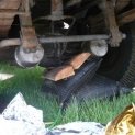 Při couvání do zahrady vlivem mokré země a trávy, liazka zapadla. Bylo naznáno, že nejlepší bude použití vzduchových zvedacích poduší.