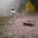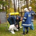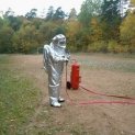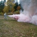Cvičení s práškovým přístrojem, test obleku.