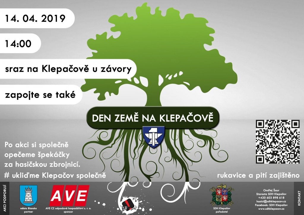 Sbor dobrovolných hasičů na Klepačově oznamuje, že v sobotu 13.4.2019 se bude konat sběr železného šrotu, starého papíru a vysloužilých elektrospotřebičů. Dále také oznamujeme, že v neděli 14.4.2019 od 14:00 hodin proběhne při Dni Země, tradiční úklid Klepačova. Sraz dobrovolníků je tentokráte u závory na paloučku. Společně uklidíme Klepačov, a po akci si odpočineme a opečeme špekáček za hasičskou zbrojnicí. Srdečně zvou členové SDH Klepačov a OA Klepačov.