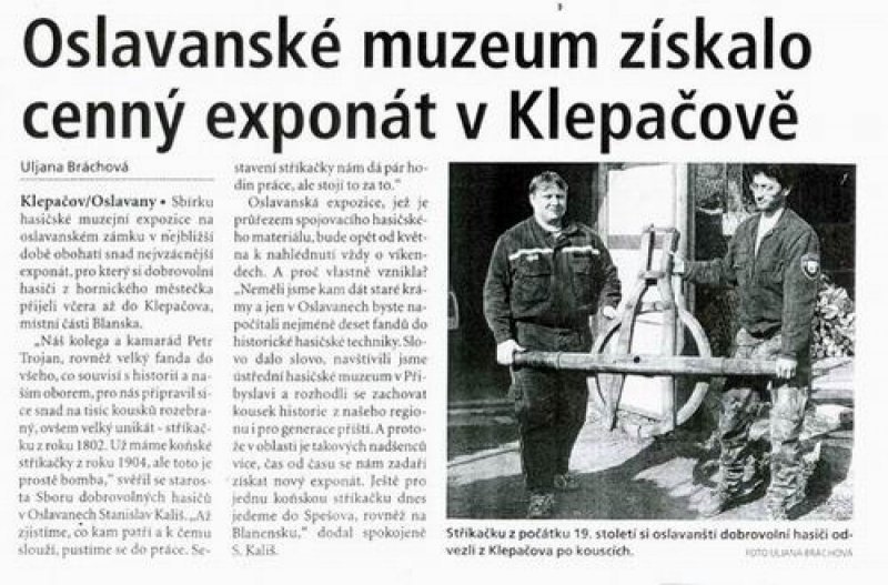 Stříkačka do muzea Oslavany.
