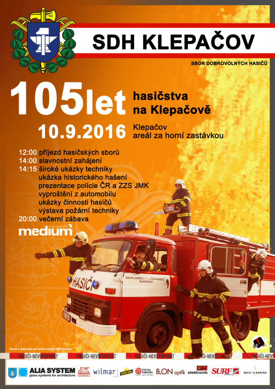 10. září to vypukne! Hasiči na Klepačově budou slavit 105 let od svého založení. Na louce za horní zastávkou!