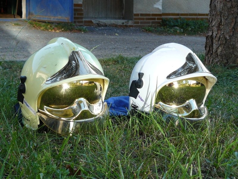 MSA Gallet F1 SA, F1 SF, F1 E - V flourescenční a bílé barvě s pozlaceným štítem