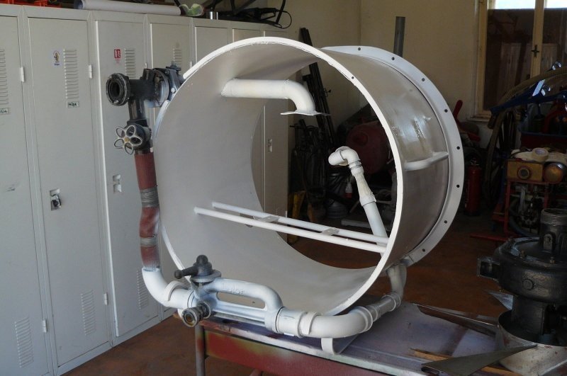 Stručný popis zařízení:Tělo stroje - roura použita z důlního větráku, stejně jako vrtule průměru 800 mm. Je možno použít z čehokoliv podobného, nebo nechat vyrobit na zakázku, použit materiál tloušťky min. 3 mm, z důvodu nosnosti hydromotoru a celého stroje. Počítat s dostatečnou rezervou pro uchycení hydromotoru. Na bocích opatřeno madly pro snadný transport, vespod lyžiny shodné s roztečí PS 12. Opatřit ochranným pletivem proti vniknutí cizích částí do roztočené vrtule.